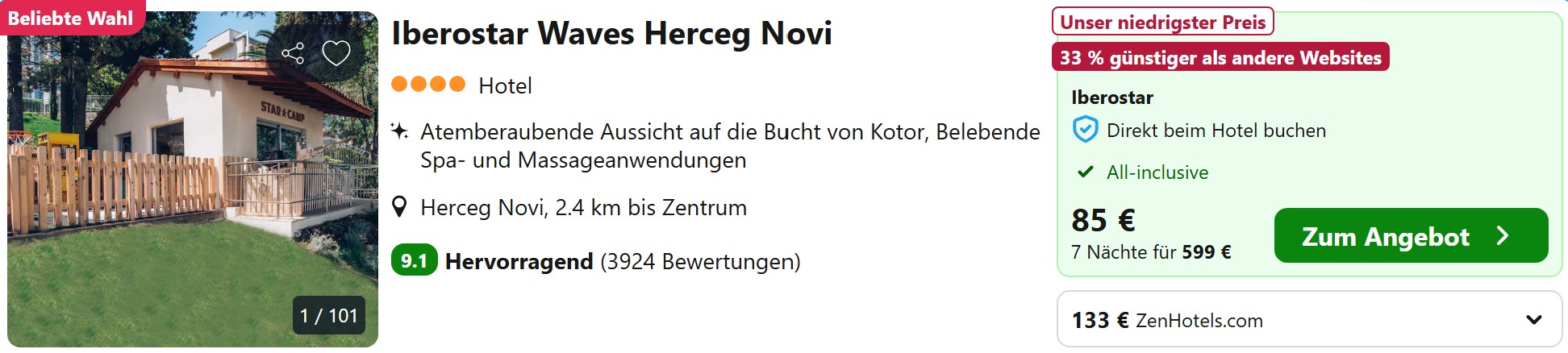 Bsp. 1 Woche Iberostar Waves Herceg Novi ab 299€ pP