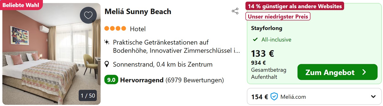 7 Nächte Melia Sunny Beach ab 459€ pP