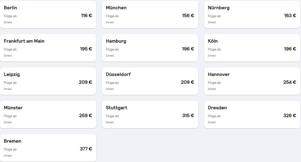 Flüge nach Heraklion auf Kreta findet ihr von fast allen Airports im deutschsprachigen Raum. Die Preise sind meist auch nicht abschreckend hoch. Zwar kommt in der Regel noch Gepäck gegen Aufpreis hinzu, dennoch solltet ihr von den meisten Abflughäfen zu Preisen zwischen 250 und 350 Euro fündig werden.