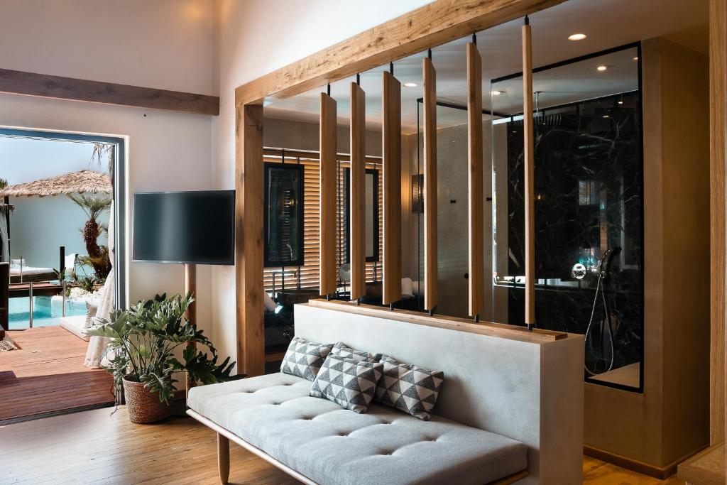 Rund um eine riesige Pool-Lagune reihen sich Villen und ein zweistöckiges Gebäude mit Zimmern, von denen ihr in der unteren Etage direkten Zugang zum Pool habt. Gleiches gilt für die meisten Villen. Deswegen wird es oft auch mit den Malediven verglichen.