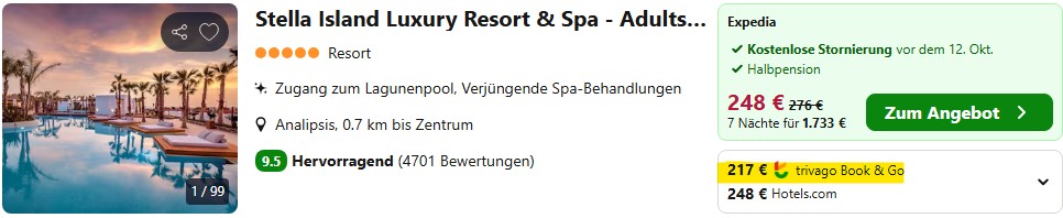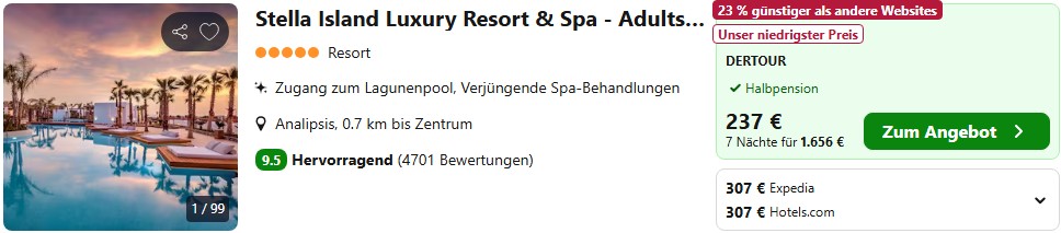 Bsp. 7 Nächte Stella Island Resort mit Halbpension ab 759€ pP