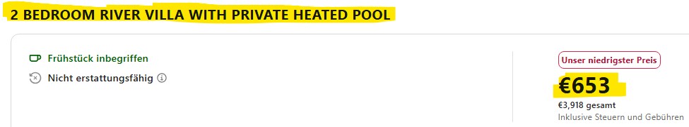 Kombiniert ihr beide Optionen, zahlt ihr für die große Villa mit 2 Schlafzimmern und Swim-Up sowie eigenem Pool bestenfalls 3.918€ für 6 Nächte. Teilt ihr euch die Kosten zu viert, sind das für jeden dann nur noch 979€. Frühstück ist schon dabei. Sicher kein Schnäppchen, aber auch ein ganz anderer Urlaub als in den riesigen Bettenburgen, für die Teneriffa sonst so bekannt ist.