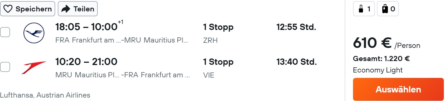 - Flüge nach Mauritius ab 580€