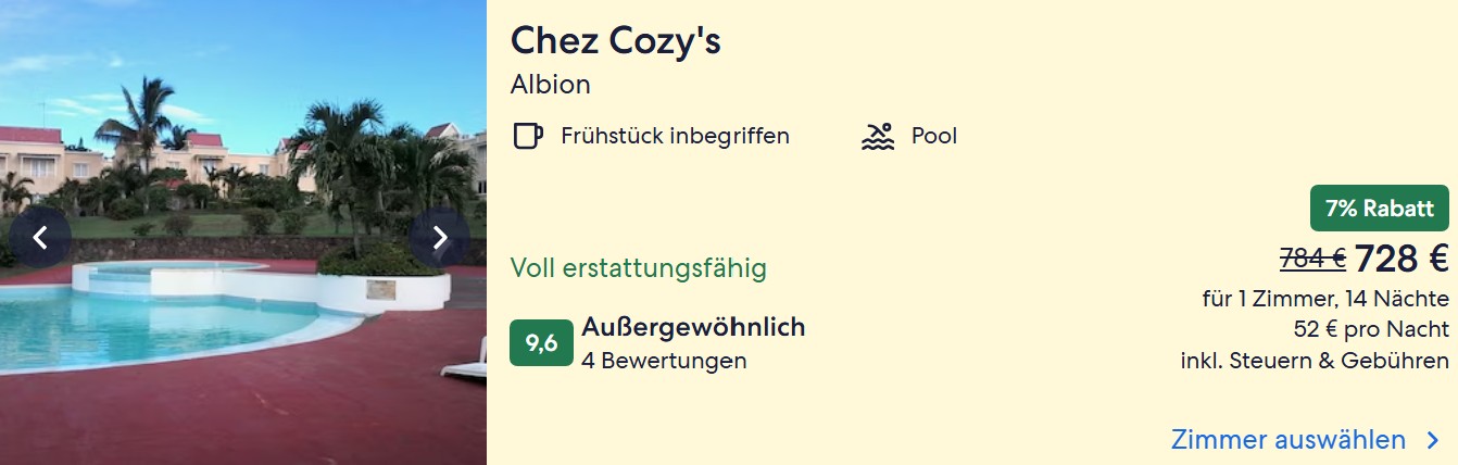 Für nur 859€ pro Person bekommt ihr nämlich nicht nur die Flüge, sondern auch schon 14 Übernachtungen in einem sehr gut bewerteten Gästehaus mit Frühstück. Ein All Inclusive-Resort ist etwa 1.000€ teurer. Wir zeigen euch, wie ihr auf den Preis kommt.