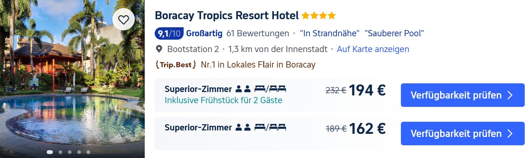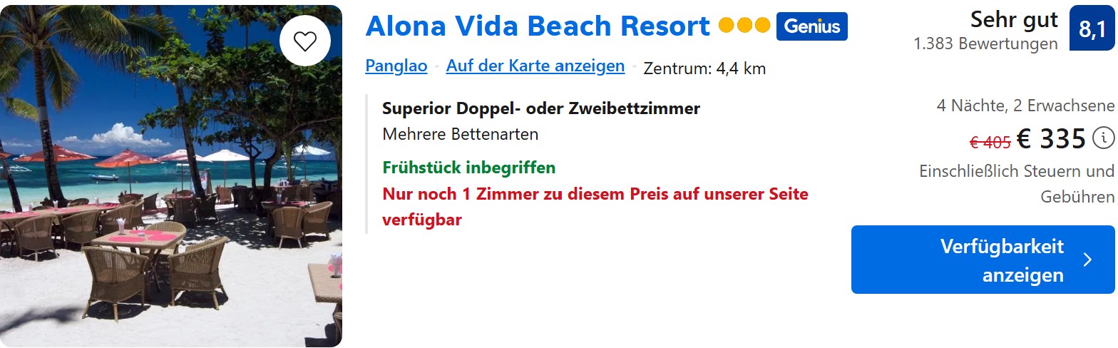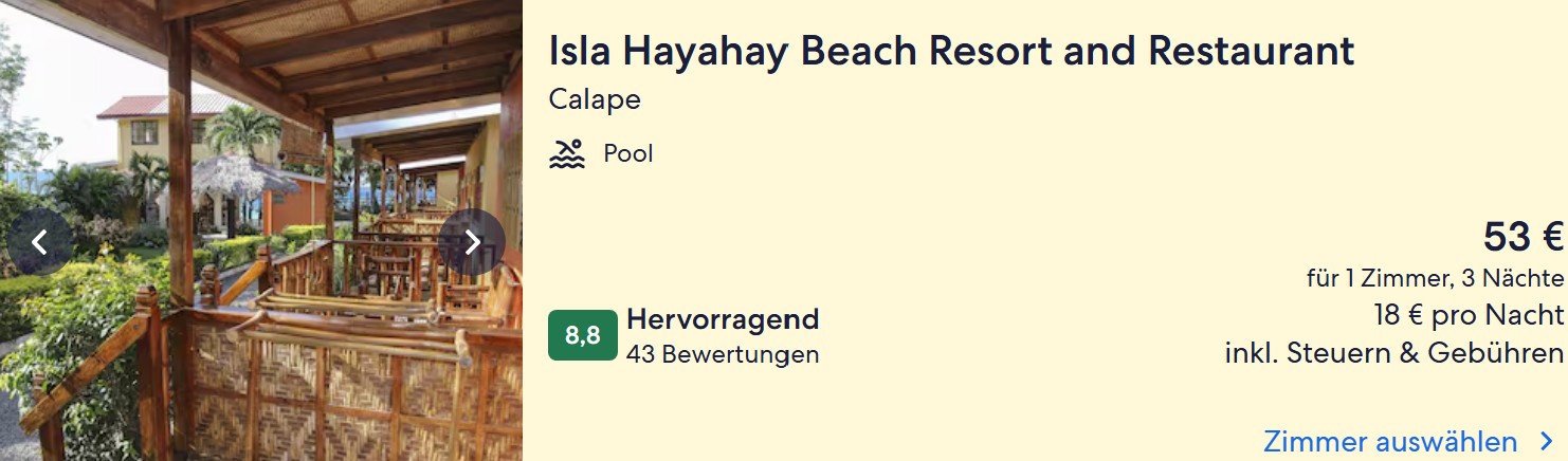 Große Luxusresorts sind eher die Ausnahme, auch wenn es sie auf Palawan, Cebu Island und zunehmend auch Boracay gibt. Einen echten Mehrwert gegenüber den kleinen Hotels habt ihr aber dort kaum. Ihr zahlt nur deutlich mehr für die Übernachtung, Essen und Getränke.