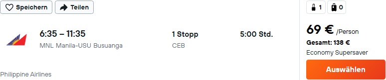 Den günstigsten Preis aktuell gibt es mit China Southern von Frankfurt. Hier geht es schon ab 535€ nach Manila und die Flugzeiten sind mit einem kurzen Umstieg in Guangzhou sehr gut. Auch das Aufgabegepäck ist schon im Preis drin.