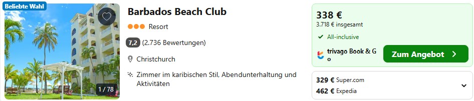 Weit über 2000 Euro pro Person kostet euch eine zweiwöchige Pauschalreise nach Barbados. Stellt ihr euch die Reise selbst zusammen, bucht also Flüge, Hotel und Transfers getrennt, spart ihr über 1000 Euro. Hier im Artikel zeigen wir euch anhand einer Beispielreise wie einfach das geht.