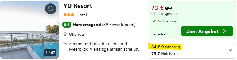 Wenn euch die getrennte Buchung von Flügen und Hotel zu umständlich oder unsicher ist, bekommt ihr auch Pauschalreisen nach Kenia zu aktuell äußerst attraktiven Preisen. Damit bucht ihr alles in einem Paket und müsst euch um nichts kümmern. In unserer Reisesuche findet ihr die Angebote aller Veranstalter mit bequemer Filter- und Sortierfunktion.