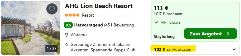 Bevorzugt ihr All Inclusive, bietet das Lion Beach Resort aktuell den besten Preis mit 51€ pro Person und Nacht. Es hat tolle Bewertungen, einen schönen Pool, super Meerblick und einen lagunenartige Strand.