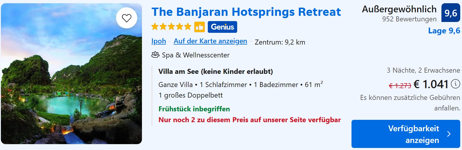 In Ipoh ist die Auswahl kleiner, die Preise entsprechend etwas höher. Für den gleichen Standard müsst ihr hier mit 70 bis 80 Euro pro Nacht rechnen. Unser zugegeben etwas kostspieligerer Favorit ist allerdings das The Banjaran Hotsprings Retreat am Rande der Cameron Mountains. Eine Suite bekommt ihr hier ab etwa 350€ die Nacht.