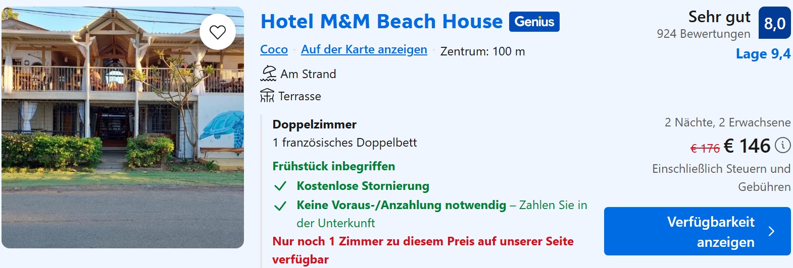 Bsp. Hotel M&M Beach House 7.2. – 9.2.