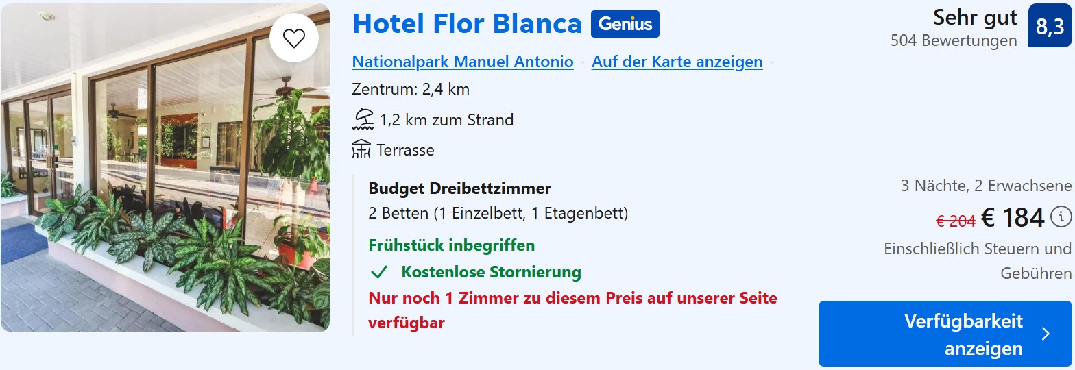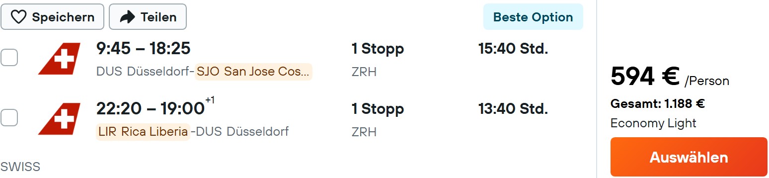 Sollte die Verbindung an euren Wunschterminen so nicht klappen, findet ihr unzählige Alternativen nach San Jose und von dort zurück. Dann habt ihr am Rückreisetag einfach nur ein bisschen mehr Fahrerei. Beachtet bei der Auswahl, dass ihr bei Umsteigeverbindungen über die USA oder Kanada die jeweilige Einreisegenehmigung (esta / eTA) beantragen müsst. Das bleibt euch bei Verbindungen über Zürich wie hier natürlich erspart.