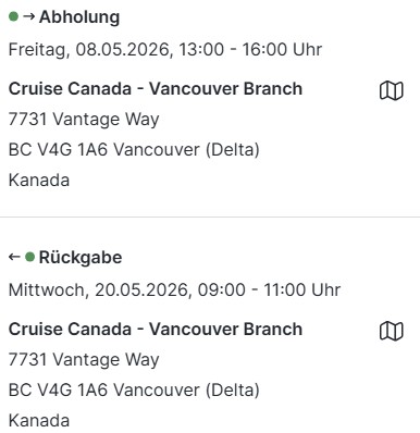 Die meisten Vermieter empfehlen, das Wohnmobil frühestens am Folgetag eines Langstreckenfluges abzuholen. In den meisten Fällen schafft ihr es aber auch gar nicht anders. Gerade in Vancouver lohnt es sich aber auch, statt nur einer Nacht gleich zwei oder drei vor der Abholung einzuplanen, um euch die Stadt bequem mit öffentlichen Verkehrsmitteln anzuschauen. Hoteltipps findet ihr unten.
