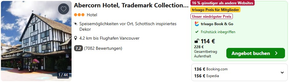 Perfekt dafür sind zum Beispiel das Abercorn Hotel der Wyndham-Kette mit Preisen ab 114€ pro Nacht inklusive Frühstück. Es liegt an der Station „Bridgeport“, von der im engen Takt Züge in die Stadt und zum Flughafen fahren. Von dort werdet ihr dann auch entweder für den Transfer zur Wohnmobilübernahme abgeholt oder bestellt euch ein UBER. Etwas teurer, aber in gleich guter Lage und mit besseren Bewertungen, ist das Holiday Inn Express Vancouver Airport.
