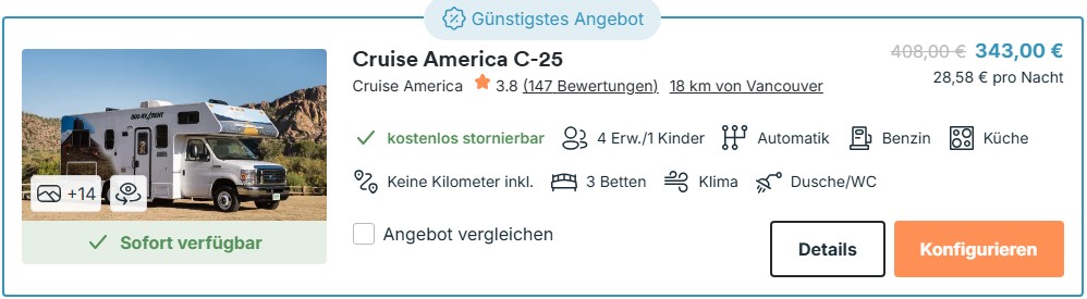 Bsp. Wohnmobil 12 Tage von Vancouver ab 435€ pP