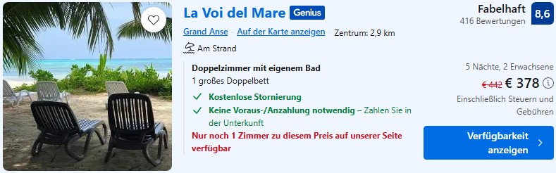 Hotelbsp. 5 Nächte Praslin ab 189€ pP