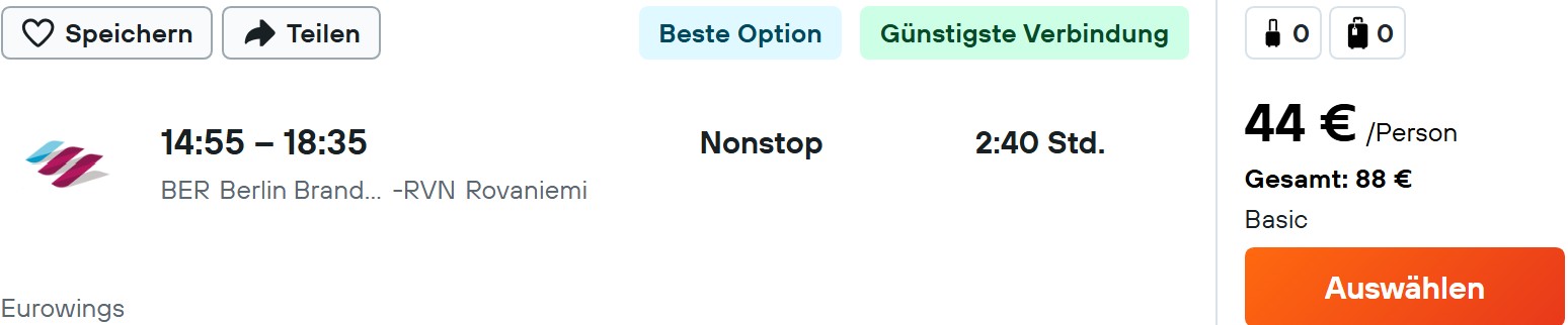 Rovaniemi wird im kommenden Winter gleich von fünf deutschen Flughäfen direkt angesteuert. So könnt ihr mit Eurowings von Berlin, Düsseldorf und Hamburg, mit easyJet von Berlin sowie mit Norwegian von München zum Polarkreis fliegen. Hinzu kommen Verbindungen mit Austrian von Wien und Edelweiss von Zürich.