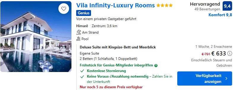 Bsp. 7 Nächte Villa Infinity ab 316€ pP