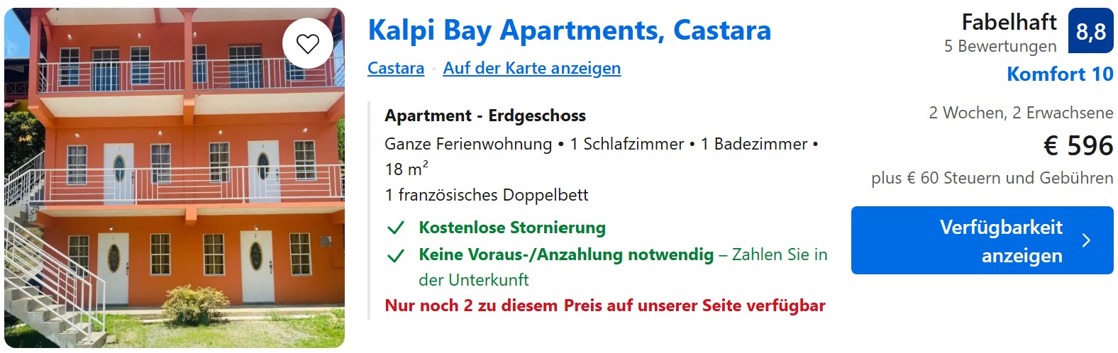 Das beste Preis-Leistungsverhältnis bekommt ihr in den recht zahlreich vorhandenen Ferienwohnungen und Gästehäusern. So zahlt ihr für 2 Wochen im besten Fall nur 327€ pro Person für das Kalpi Bay in Castara und seid trotzdem nur wenige Meter vom Strand entfernt. Allerdings müsst ihr euch natürlich dann selbst versorgen, was aber dank der fast überall vorhandenen Küche oder Kochnische kein großes Problem ist.