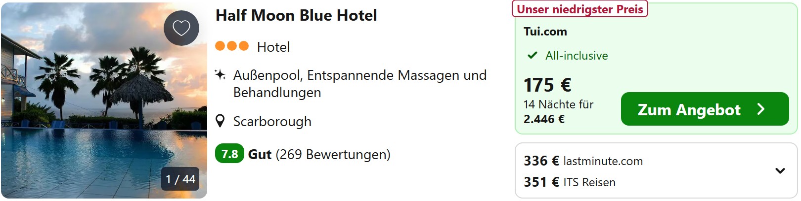 Wenn das nicht eure Art Urlaub ist, dann schaut euch nach All Inclusive-Resorts um. Diese kosten zwar deutlich mehr, aber zumindest habt ihr dann die Kosten von Anfang an unter Kontrolle. Das Half Moon Blue Resort ist im Zeitraum der Flüge die günstigste Option. Andere Resorts sind leider sehr viel teurer.