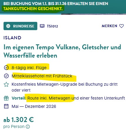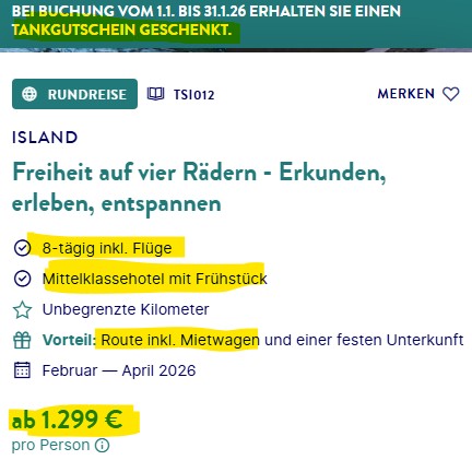 - Tankgutschein im Wert von 7.000 ISK (ca. 50€) bei Buchung bis 31.1.26