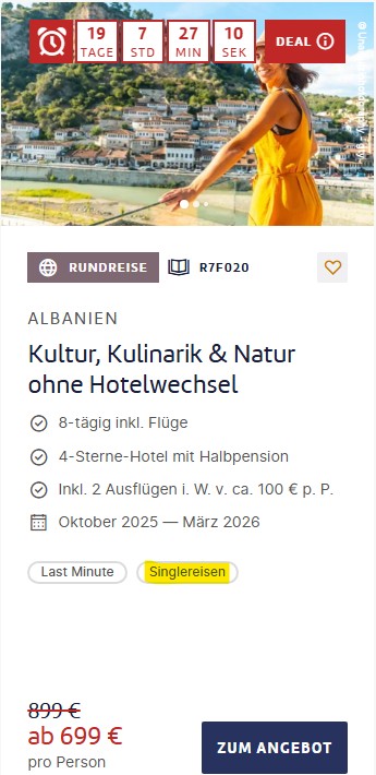 Wir haben euch 5 Angebote mit aus unserer Sicht sehr gutem Preis-Leistungsverhältnis hervorgehoben. Ihr könnt aber auch selbst mit wenigen Klicks euer favorisiertes Reiseziel und den Termin filtern.