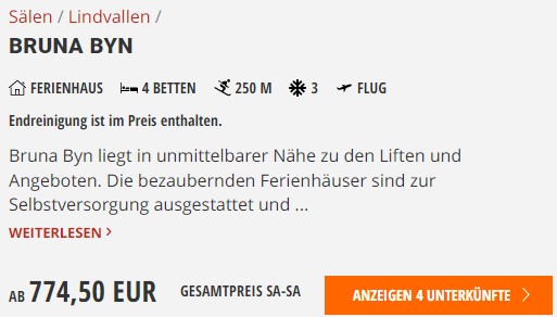 Skistar ist der Betreiber der meisten Skigebiete in Schweden. Dort findet ihr nicht nur die Skipässe, sondern auch die beste Übersicht für Unterkünfte aller Art, von Ferienwohnungen bis hin zu den Hotels und Lodges. Angegeben ist jeweils auch, wie weit es bis zur Piste ist. So könnt ihr sicher stellen, dass ihr keine Zeit verliert.