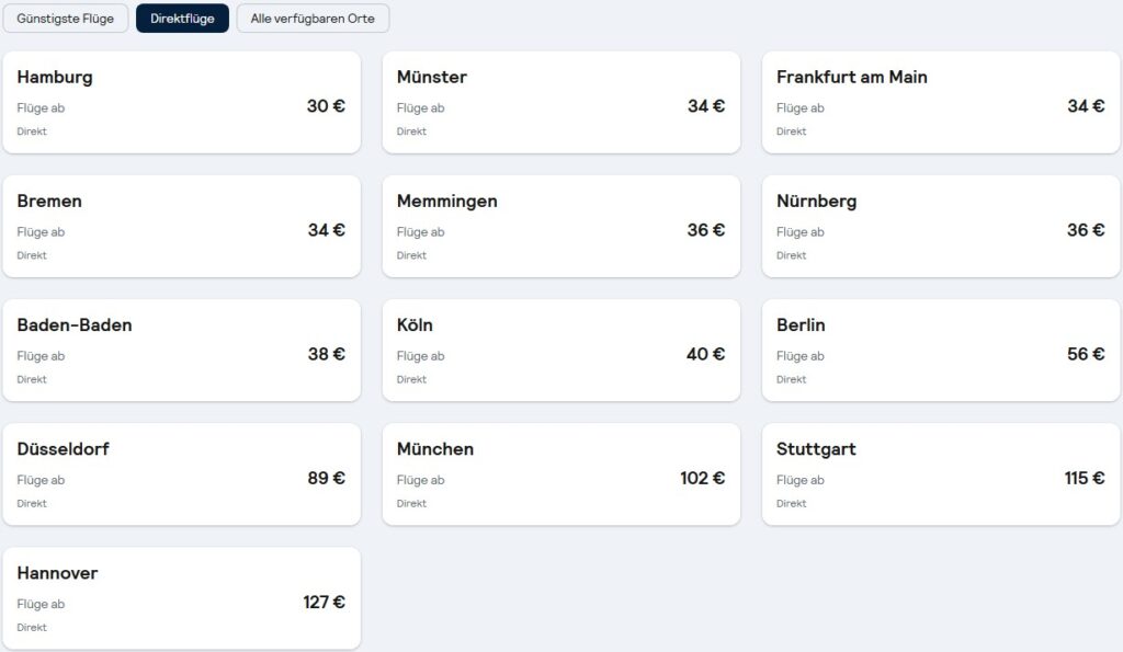Ab-Preise aller Direktflüge aus Deutschland bei Skyscanner im September: