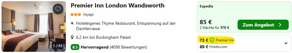 - Premier Inn und Travelodge heißen die beiden britischen Hotelketten mit dem besten Preis-Leistungsverhältnis und sehr vielen Standorten in London.
