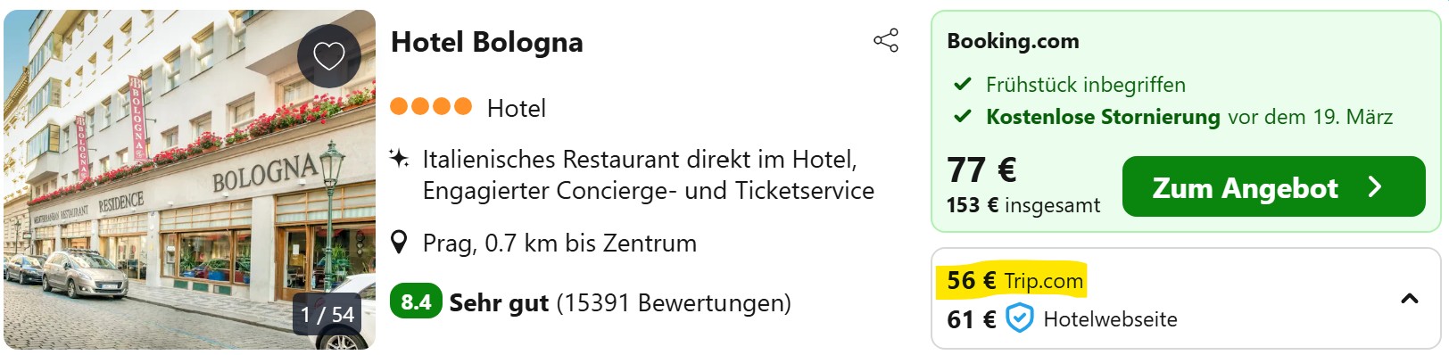Natürlich schwankt der Preis je nach Saison, Wochentag, besonderen Ereignissen usw. Aber das ist bei allen anderen Unterkünften nicht anders. Nutzt ihr eine Metasuche wie Trivago, findet ihr mit einer Anfrage gleich immer den günstigsten Anbieter.