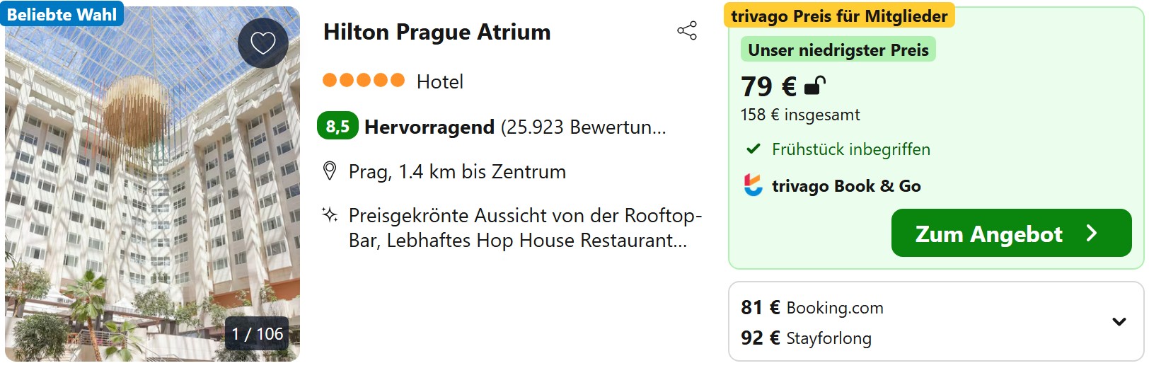 Tipp: Aktuell gibt es auch das Hilton Prag äußerst günstig. Bei Aufenthalten mit maximal 2 Übernachtungen übers Wochenende ist sogar das Frühstück inklusive. So könnt ihr 2 Nächte Mitte Februar schon für 79€ pro Person bei 2 Erwachsenen buchen.