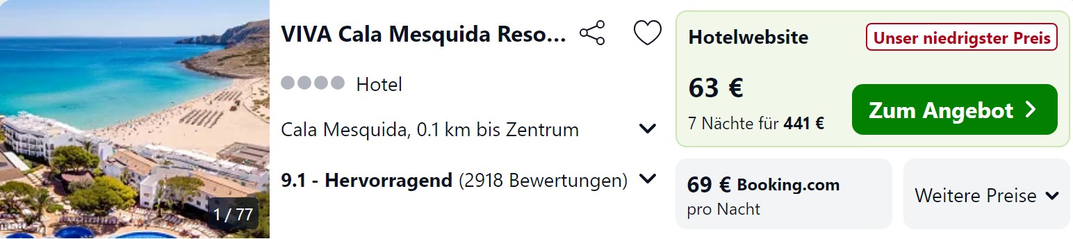 1 Woche VIVA Cala Mesquida Resort ab 220€ pP